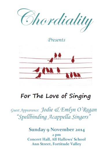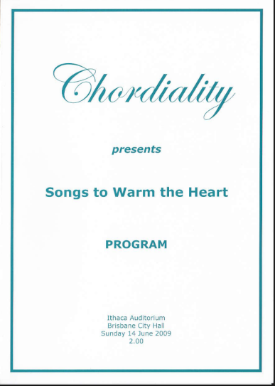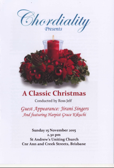 Have a look through our programs to see the diverse repertoire we sing. We now perform two main concerts each year, which sometimes include guest performances by orchestra and vocal soloists