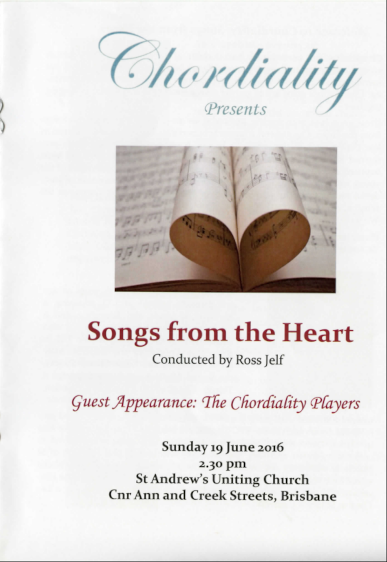 In 2016 Chordiality enjoyed touring to Western Australia collaborating with Men of Bunbury and performing in a variety of venues including a winery.
